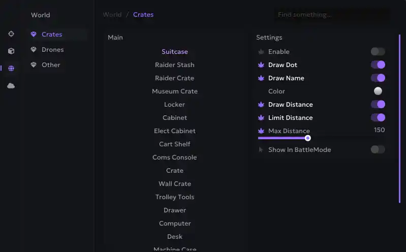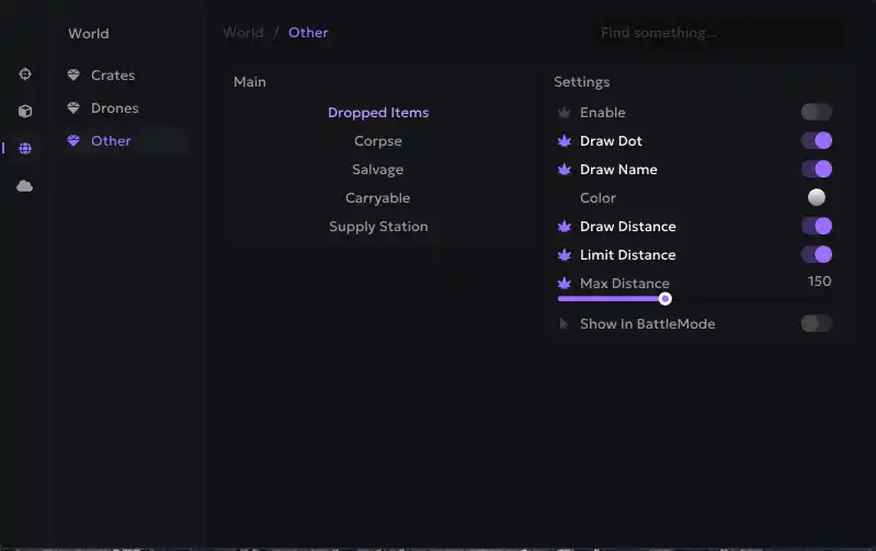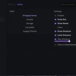 Other: Dropped items; Corpse; Salvage; Carryable; Supply Station. (you can setup each other option separately)